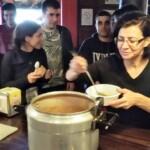 Cogiendo fuerzas en el 16º Maratón Chinaski en La Discotaberna, con las deliciosas judías preparadas por Mari Ángeles Perdigacho
